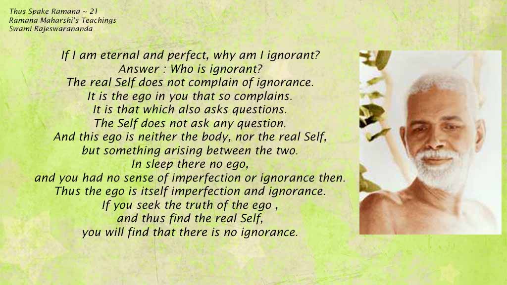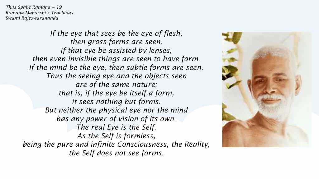 These are Great Teachings of Bhagavan Sri Ramana Maharshi, offered in a concise manner. I have typed up these for the benefit of everyone. Bhagavan said “Only those whose minds are less muddy, or are pure, can relish small and purposeful works.” Each one here is a gem, and should be contemplated upon by every earnest Seeker of Happiness in Life and Self-Realization.